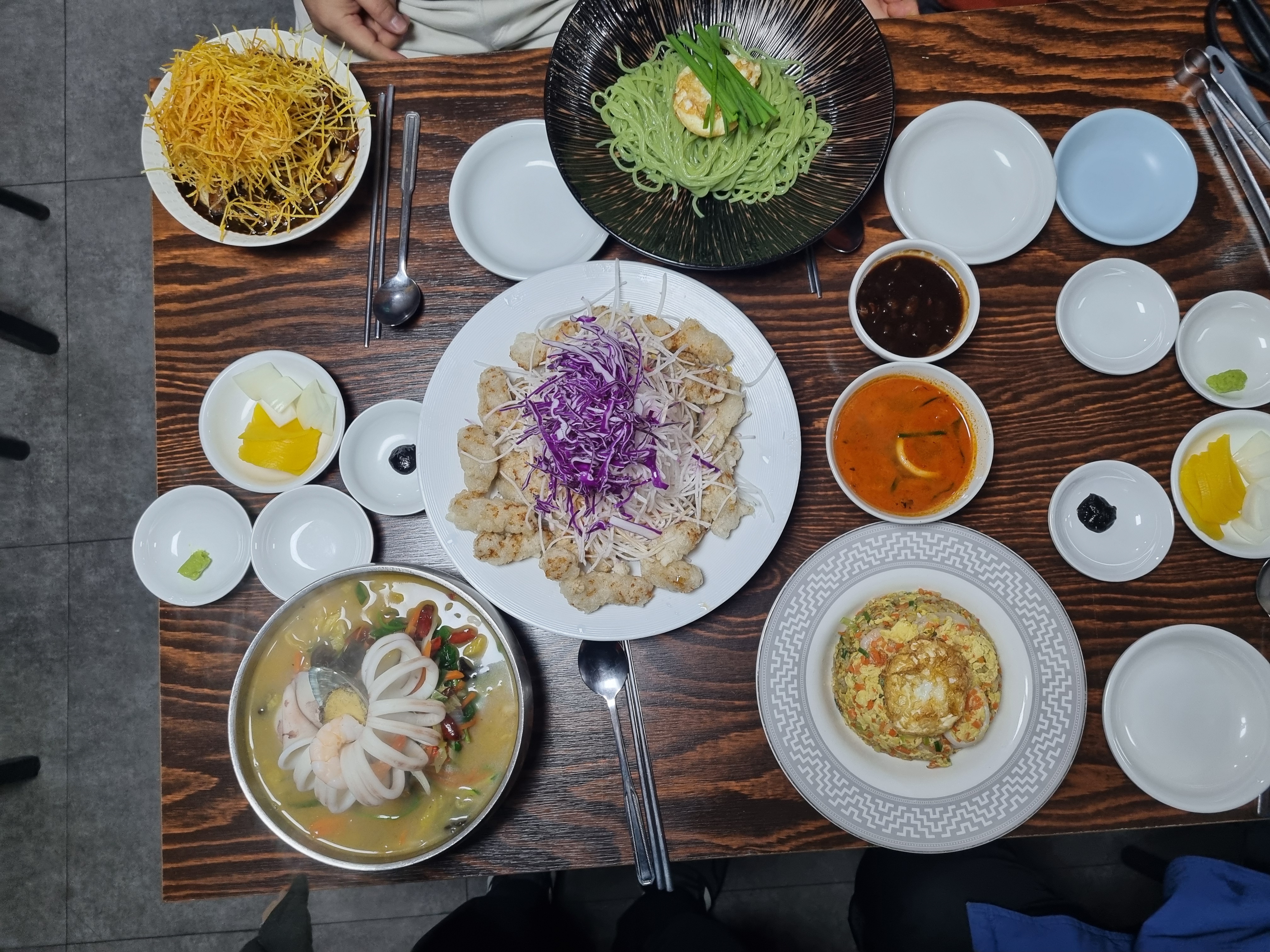 ✅ 볶음밥 - 다른 메뉴에 비해서 일반적인 볶음밥이에요. 빨간 짬뽕 국물과 짜장소스 따로 주십니다요~~^^; 꼭 밥을 먹어야 하는 게 아니면 4인 기준 간짜장, 백짬뽕, 탕수육을 시키겠어요. 저와 일행은 중국음식을 너무 좋아하고, 많이 먹는 스타일이라 네 가지 다 시켰습니다.ㅎㅎㅎ 다른 테이블, 특히 2명 오신 분들은 여러 가지 드시고 싶어서 시키셨는데, 많이 남기시기도 했어요.(참고로 탕수육은 남은 거 포장해 달라고 하면, 친절하게 포장해 주십니다.) 고구마나 순무 같은 강화의 특산물들을 사용하고, 손님들이 많다 보니 항상 신선한 재료를 사용하셔서 맛있게 먹고 왔습니다.